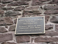 Then it was off to Poet's Seat Tower located on top of a high hill overlooking the town of Greenfield. Poet's Seat Tower is a 1912 sandstone observation tower, located in Greenfield, Massachusetts. It was so named to honor a long tradition of poets being drawn to the spot, in particular, the local poet Frederick Goddard Tuckerman. By 1850, the location was referred to as "Poet's Seat" by Tuckerman in a surviving herbarium entry for November 10th of that year. An earlier wooden tower was erected at the site on June 3, 1879. This first structure was built, along with a public drinking fountain and a road accessing the site, under the auspices of the The Greenfield Rural Club.